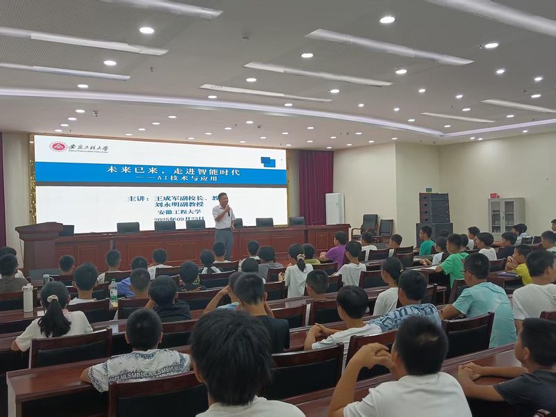 2025年9月23日下午2:30,“全国科普月——2025年安徽省科技志愿服务专家团全省校园巡讲活动”在太湖县实验中学综合楼五楼报告厅成功举行。本次活动特邀安徽工程大学智能机器人与数字孪生科普基地专家团、人工智能学院刘永明副教授担任主讲,为师生们带来了一场前沿而生动的人工智能(AI)科普盛宴。县科协党组成员、科普部部长李敏,二级主任科员、学会部部长胡小明,太湖县实验中学校长张叶红、副校长殷君义,以及部分教师一同参加了活动。