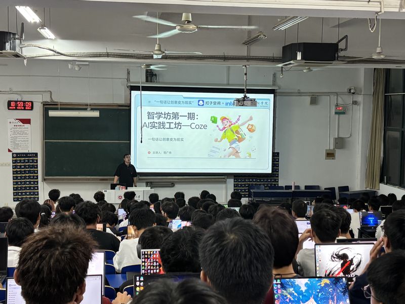为深入贯彻落实习近平总书记关于人工智能的重要指示精神,加速人工智能应用型人才培养,9月27日晚,由人工智能学院携手字节跳动旗下扣子平台及英特尔公司联合主办的“智学坊”第一期——“Coze”Agent实践工作坊,在校本部6J214、6J215教室成功举办。本次活动面向2025级全体新生,由范广伟老师、赵琛晖同学担任主讲。
