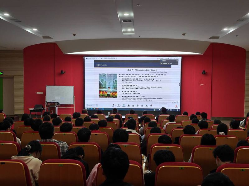 为提升大学生创新创业意识,合理规划专业学习和成长路径,11月6日,人工智能学院在图文中心小报告厅举行优秀校友报告会。特邀学院2024届人工智能专业优秀校友、现在美国圣母大学攻读博士学位的袁政卿校友,为在校生带来了一场题为“AI浪潮中笃行科研初心”的精彩讲座。