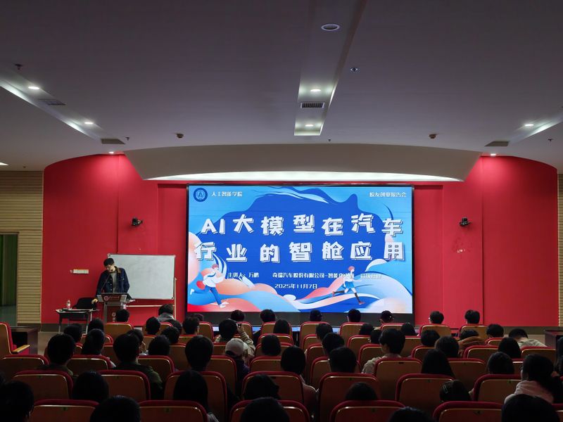 为进一步发挥优秀校友的榜样示范作用,帮助学生做好大学和职业生涯规划,为就业工作打下坚实基础,11月7日,人工智能学院邀请机械制造及其自动化专业2014级校友、奇瑞汽车股份有限公司智能化中心高级经理万鹏做了一场题为《AI大模型在汽车行业的智舱应用》的精彩报告。新校区200余名学生聆听了本次报告,报告会由辅导员范广伟主持。