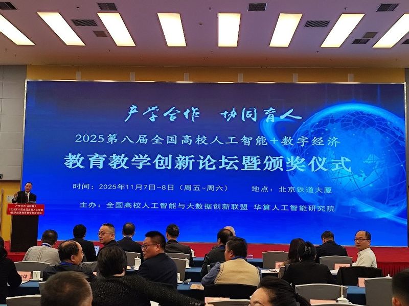 本次论坛由全国高校人工智能与大数据创新联盟、华算人工智能研究院主办,北京航空航天大学、北京工业大学、西安电子科技大学、东华大学、安徽工程大学、北京经济技术开发区企业协会、机械工业出版社等全国30多家高校和机构协办。来自全国产、学、研、企各界代表150多人出席了论坛,联盟名誉理事长、中国工程院院士李伯虎为论坛致辞。大会集中探讨了高校人工智能、智能科学等专业建设方案、课程体系、实验实践教学、师资队伍建设及校企合作等取得的成就、存在的问题及发展趋势。同时,论坛还对在人工智能、数字经济等专业建设、人才培养、学术研究上取得一定成就的全国部分高校、企业、教师代表给予表彰并颁发荣誉证书。我校人工智能学院、数理与金融学院荣获2025全国高校人工智能+数字经济实验室建设“先进单位”荣誉称号。