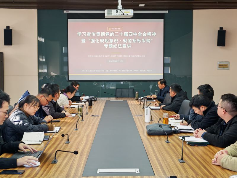 为深入学习宣传贯彻党的二十届四中全会精神,扎实推进全面从严治党,切实筑牢风险防控屏障,11月26日,人工智能学院开展“学习贯彻党的二十届四中全会精神暨‘强化规矩意识、规范招标采购’”专题纪法宣讲。本次宣讲特别邀请校国有资产管理与实验室管理处副处长王龙飞担任主讲,人工智能学院全体教职工参加。