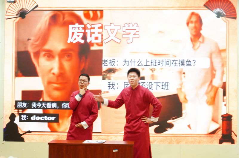 晚会伊始,一段创意短片点燃全场氛围,学院党委副书记李文江登台致辞,向全体师生致以热烈欢迎与美好期许。随后,节目轮番登场,精彩纷呈:动感舞蹈《非人哉》《Untouchable》活力四射,瞬间点燃现场气氛;歌曲演唱《心墙》《给我一首歌的时间》温柔治愈,引发全场共鸣;话剧《谁杀死了周日》《甄嬛传之外卖风波》诙谐幽默,台下笑声不断;相声《废话文学》金句频出,逗得观众捧腹大笑;吉他弹唱《无名的人》质朴深情,传递出平凡生活中的不凡力量。中场互动环节趣味小游戏让台上台下笑声不断,零食、钥匙扣等精美礼品轮番派送,将晚会氛围推向又一个高潮,师生共同度过一个美好又难忘的夜晚。