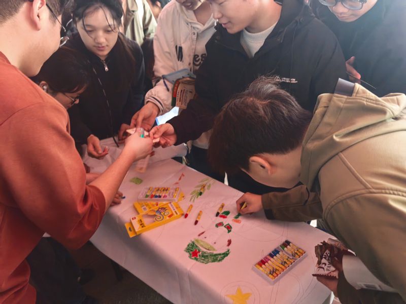 历史是最好的教科书。在“红色记忆沉浸区”,同学们屏气凝神挑战“团史时光机”拼图,在指尖还原五四运动、建团百年等重大历史瞬间;一旁的“红色旋律猜猜猜”点位高潮迭起,随着《光荣啊,中国共青团》等经典红歌的前奏响起,大家争先恐后抢答接唱,嘹亮的歌声在广场上空回荡,诉说着新时代青年的赤诚初心。