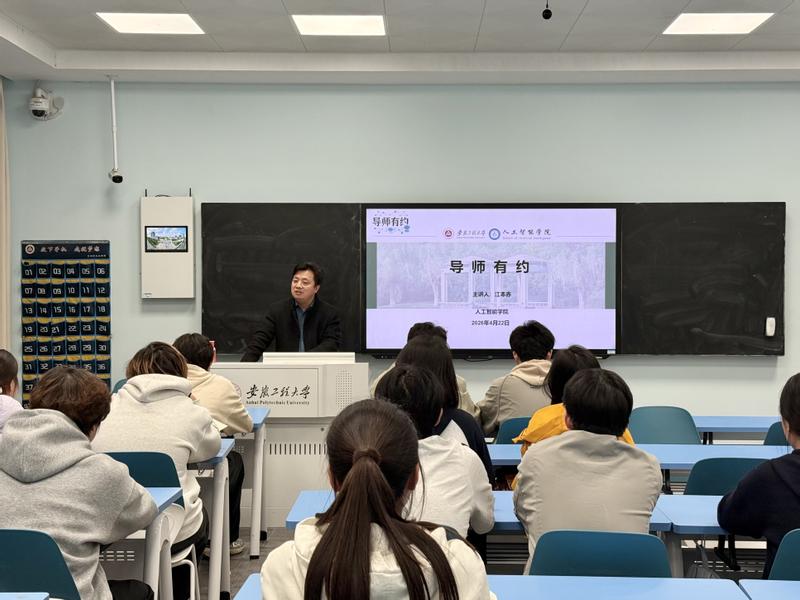 4月22日晚,人工智能学院在6J303教室举办“导师有约”系列活动,院长江本赤出席并作专题指导,2025级部分本科生及辅导员参加活动。